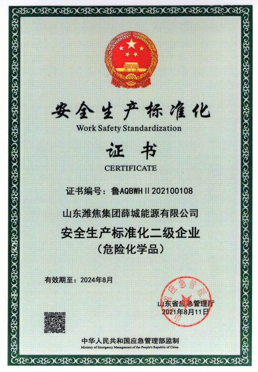 近日,山東省應急管理廳發(fā)布山東危險化學品從業(yè)單位二級安全標準化達標公告,山東濰焦集團薛城能源有限公司順利通過二級安全生產標準化審核認定。