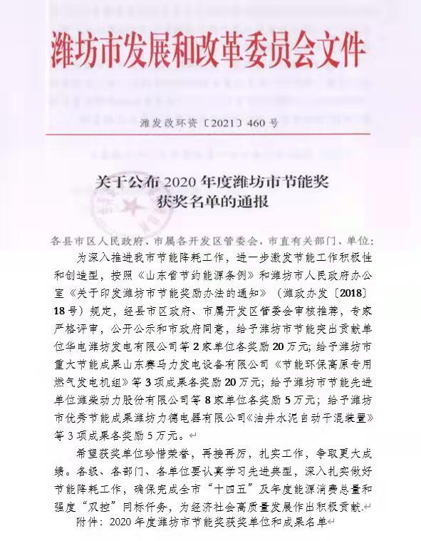 近日,在濰坊市發(fā)展改革委員會(huì)組織的節(jié)能先進(jìn)單位評(píng)選中,振興焦化公司榮獲2020年度“濰坊市節(jié)能先進(jìn)單位”稱號(hào),并獲獎(jiǎng)金5萬(wàn)元。